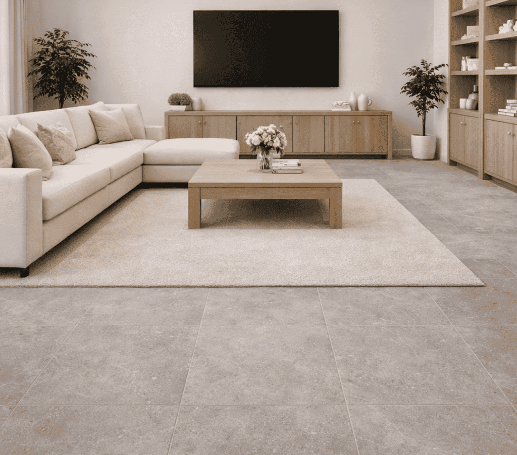 Коллекция керамогранита MONOCHROM — это нейтральный камень с проработанной четкой графикой и шершавой глазурью с блёстками.