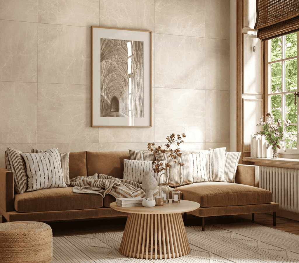 Керамогранит из коллекции «Увильды» искусно воссоздает структуру оникса в умиротворяющих и спокойных оттенках бежевого и серого с нечеткими светлыми полосками. Такую полосчато-окрашенную разновидность мрамора часто называют мексиканским или алжирским ониксом.
